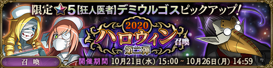 また『ハロウィン召喚-第ニ弾-』では『★5【狂人医者】デミウルゴス』がピックアップ!