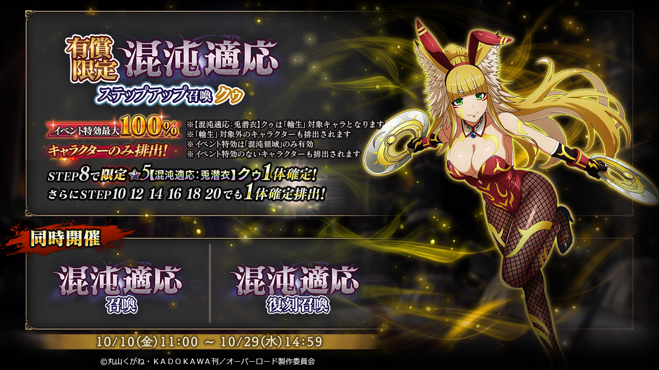新登場の限定★5 【混沌適応:淑面衣】 シャルティアと、限定★5 【混沌適応:兎潜衣】 クゥをピックアップします!
