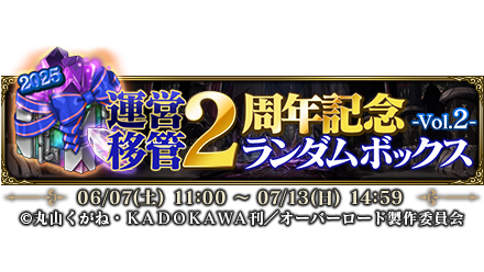 『運営移管2周年記念ランダムボックスvol2』各種『運営移管2周年記念パック』限定販売!