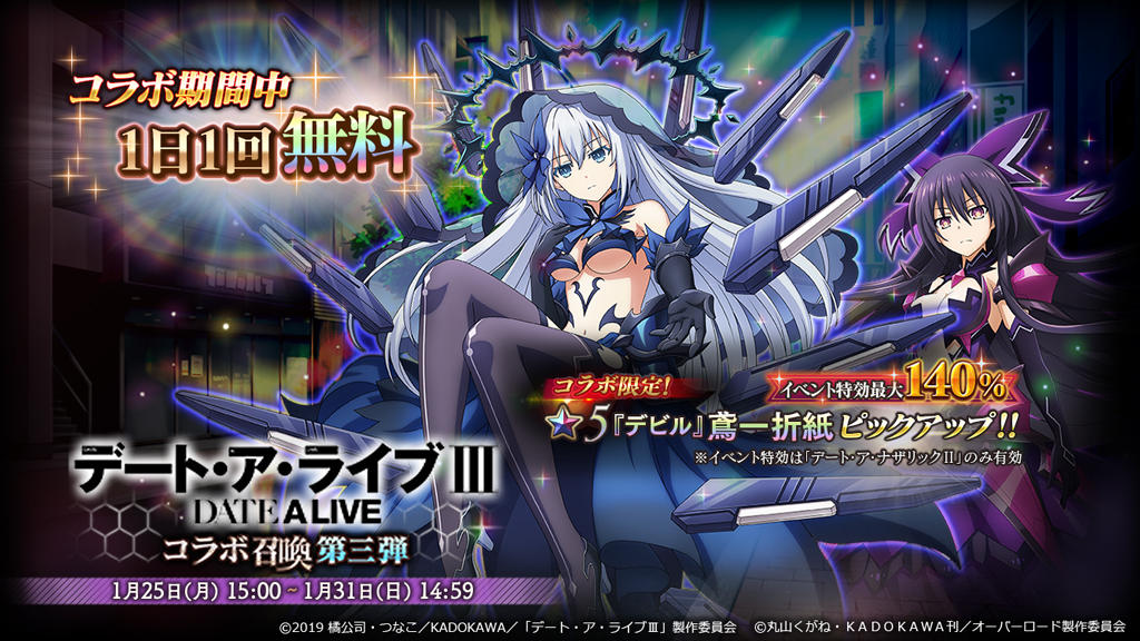1/30 15時より『デート・ア・ライブⅢコラボ召喚第四弾』を開催いたします。