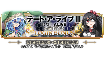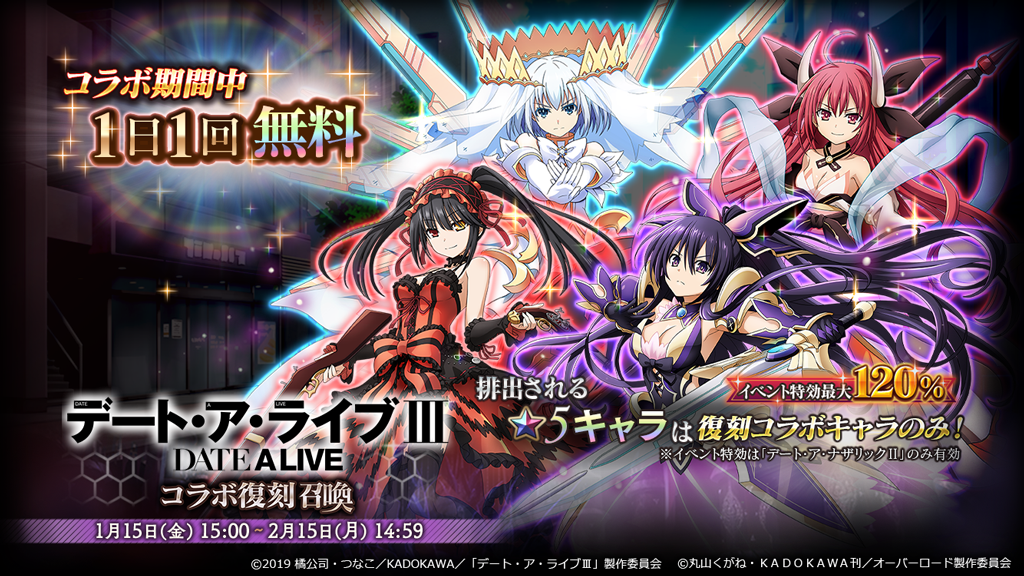 1/15 15時より『デート・ア・ライブⅢ』コラボを開催いたします。
