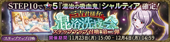 11/23 15時より『三吉君様杯・混浴洗技会ステップアップ召喚-第二弾-』を開催いたします。
