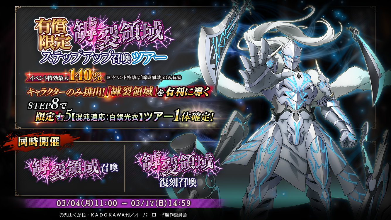 ※『有償限定罅裂領域ステップアップ召喚-ツアー-』は有償混沌石限定召喚となります。
