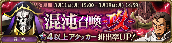 ★4、★5のアタッカーの出現確率をアップしたピックアップ召喚を開催します。