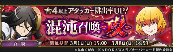 3/1 15時より『混沌召喚 -攻-』『混沌召喚 -守-』『混沌召喚 -援-』を
