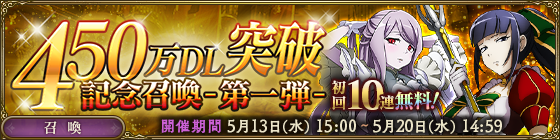 5/13 15時より『450万DL突破記念召喚-第一弾-』を開催いたします。