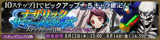 8/13 15時より『ナザリック・サマーメモリーズ ステップアップ召喚 エントマver.』を開催いたします。