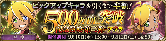 9/10 15時より『500万DL突破記念召喚 第二弾 アウラ』を開催いたします。