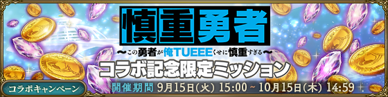 9/15 より『慎重勇者~この勇者が俺TUEEEくせに慎重すぎる~』とのコラボを開催いたします。