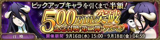 9/16 15時より『500万DL突破記念召喚 第二弾 アルベド』を開催いたします。