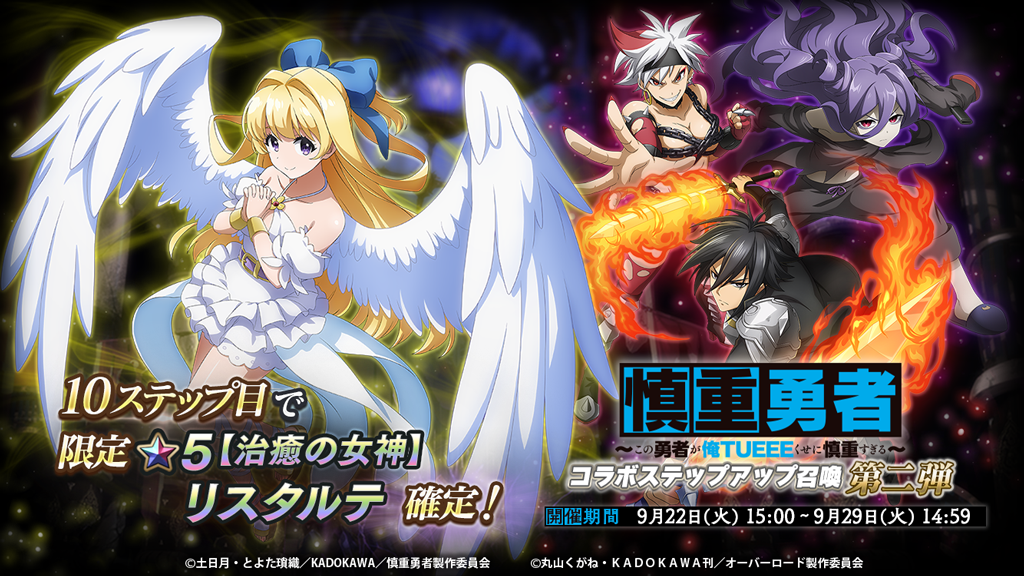 9/22 15時より『慎重勇者~この勇者が俺TUEEEくせに慎重すぎる~コラボステップアップ召喚第二弾』を開催いたします。