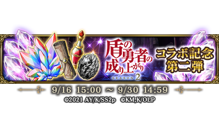 9/16 15時より『盾の勇者の成り上がりコラボ記念パック第二弾』の販売を開始いたします。