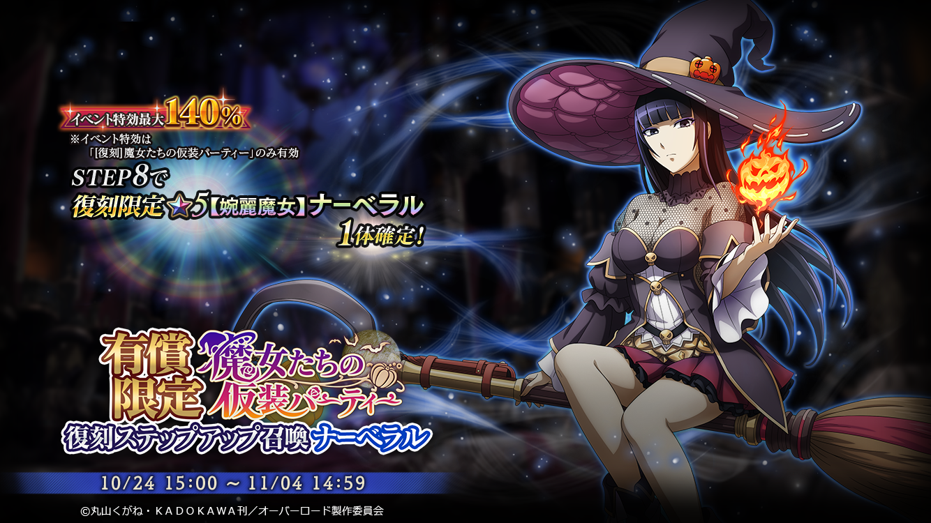 ※『有償限定魔女たちの仮装パーティー復刻ステップアップ召喚-ナーベラル-』は有償混沌石限定召喚となります。