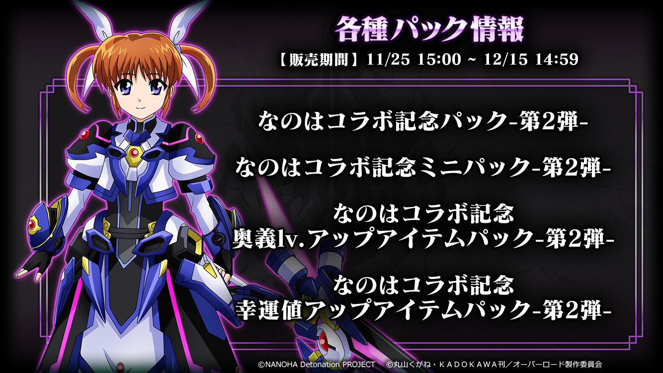 『なのはコラボ記念幸運値アップアイテムパック-第2弾-』限定販売!