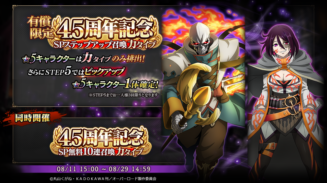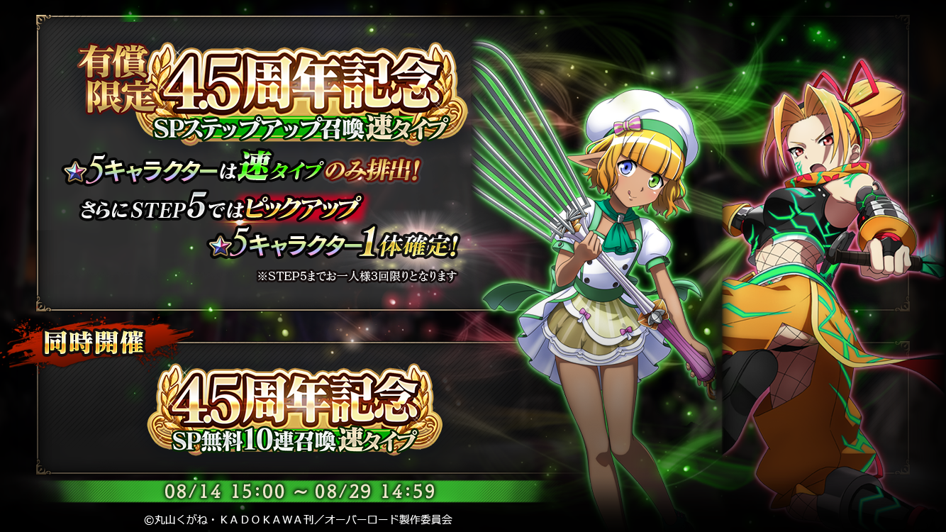 各種『有償限定4.5周年記念SPステップアップ召喚』『4.5周年記念SP無料10連召喚』開催!