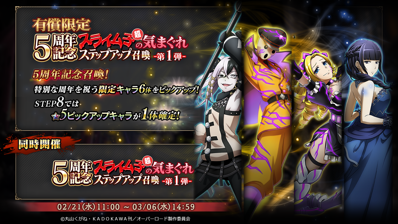 『有償限定5周年記念スライム子の超気まぐれステップアップ召喚-第1弾-』『5周年記念スライム子の超気まぐれ召喚-第1弾-』開催!
