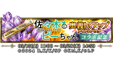 期間限定『佐々木とピーちゃんコラボ記念奥義lv.アップアイテムパック』登場!