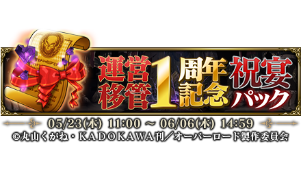 祝宴限定★5キャラからお好きな1体が選べる「運営移管1周年記念祝宴交換巻物」や、