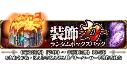 力タイプの攻撃力や、種族に対するダメージをUPさせる装飾品が手に入るランダムボックスと、