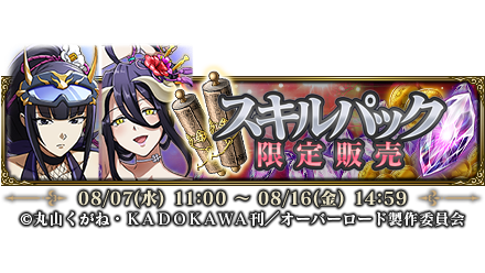 期間限定『スキルパック【水面駆ける鎖帷子】ナーベラル』『スキルパック【水辺照らすくノ一】アルベド』登場!
