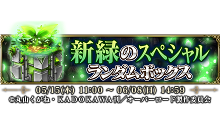 新緑のスペシャルランダムボックスからは、新規遺物を含む5種類のアイテムのうち、どれか1つを確率で入手することができます!