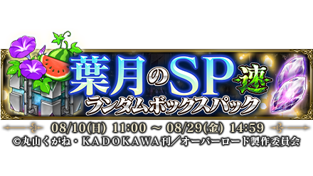 ※「葉月のSPランダムボックスパック-速-」には9/5 (金) 14:59までの使用期限があります