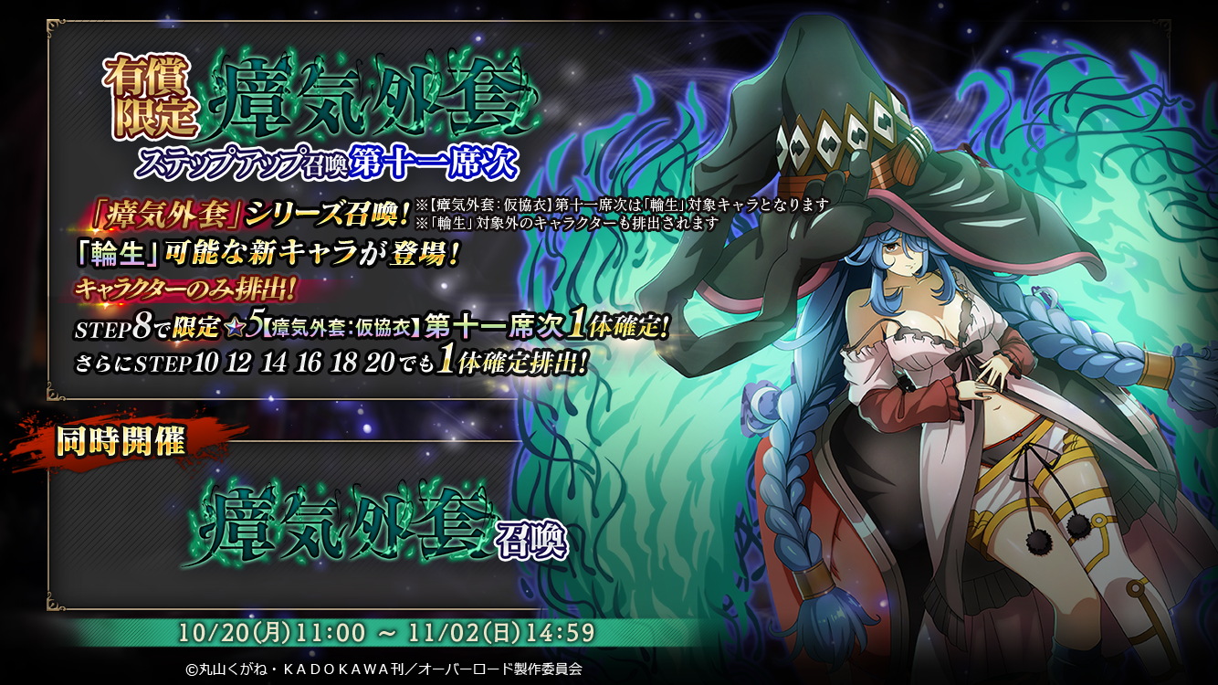 『有償限定 瘴気外套ステップアップ召喚-第十一席次-』『瘴気外套召喚』開催!