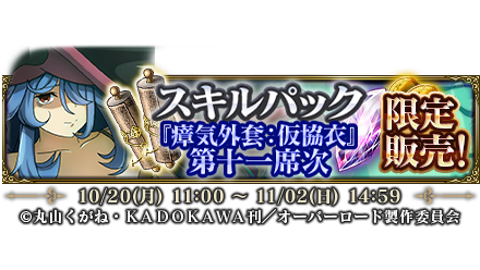 期間限定『スキルパック【瘴気外套:仮協衣】第十一席次』登場!