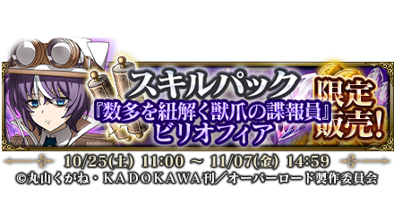 期間限定『スキルパック【数多を紐解く獣爪の諜報員】ビリオフィア』登場!