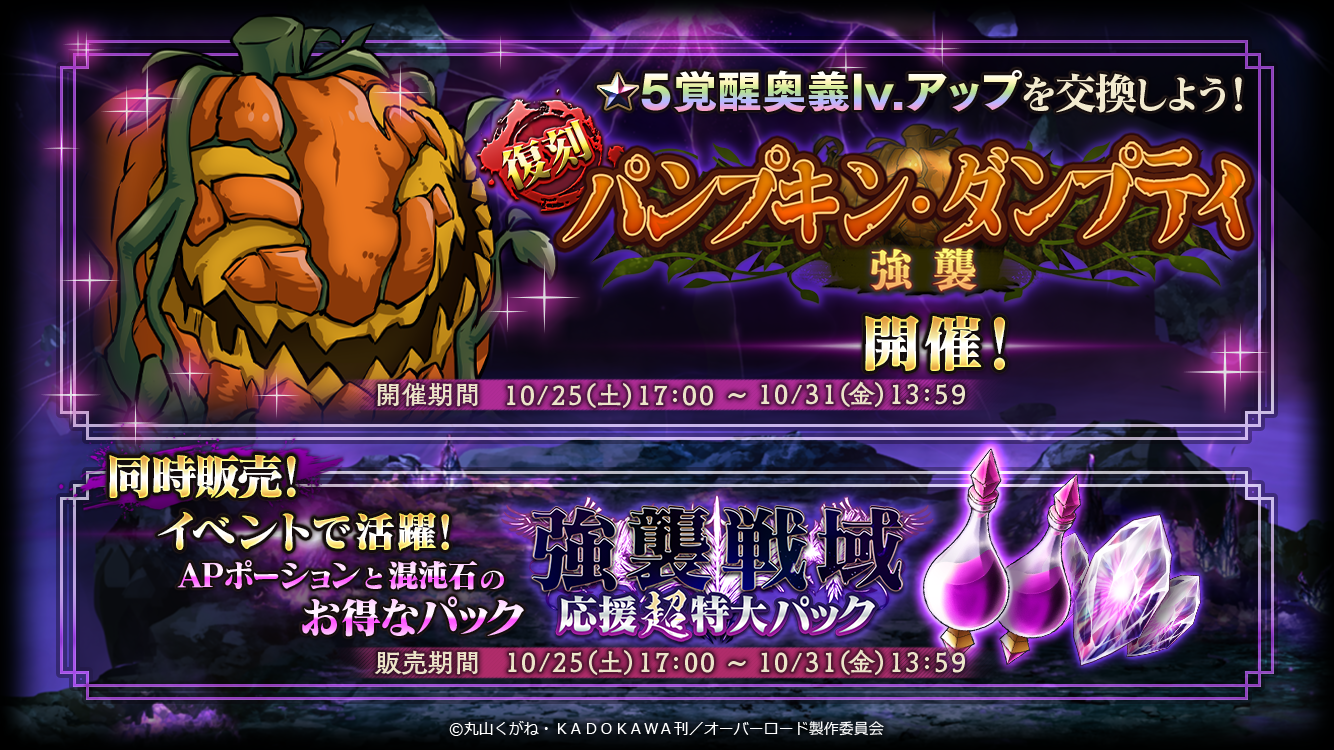 『[復刻]強襲戦域-パンプキン・ダンプティ-』の詳細画面で開催期間が「10/31 18:59まで」と