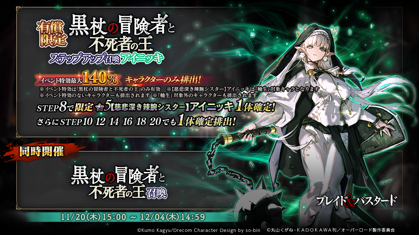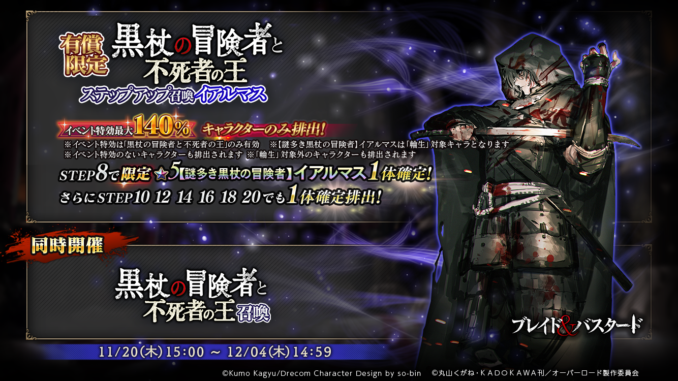『有償限定 黒杖の冒険者と不死者の王ステップアップ召喚-イアルマス-』『有償限定 黒杖の冒険者と不死者の王ステップアップ召喚-アイニッキ-』『黒杖の冒険者と不死者の王召喚』開催!