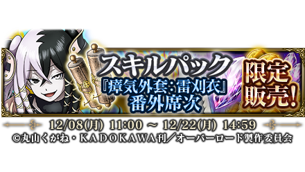 期間限定『スキルパック【瘴気外套:雷刈衣】番外席次』登場!