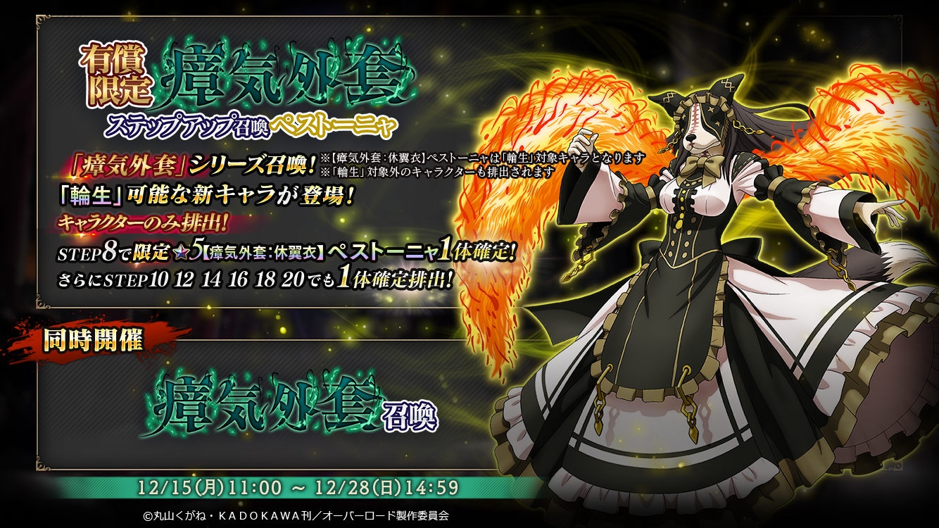 『有償限定 瘴気外套ステップアップ召喚-ペストーニャ-』『瘴気外套召喚』開催!