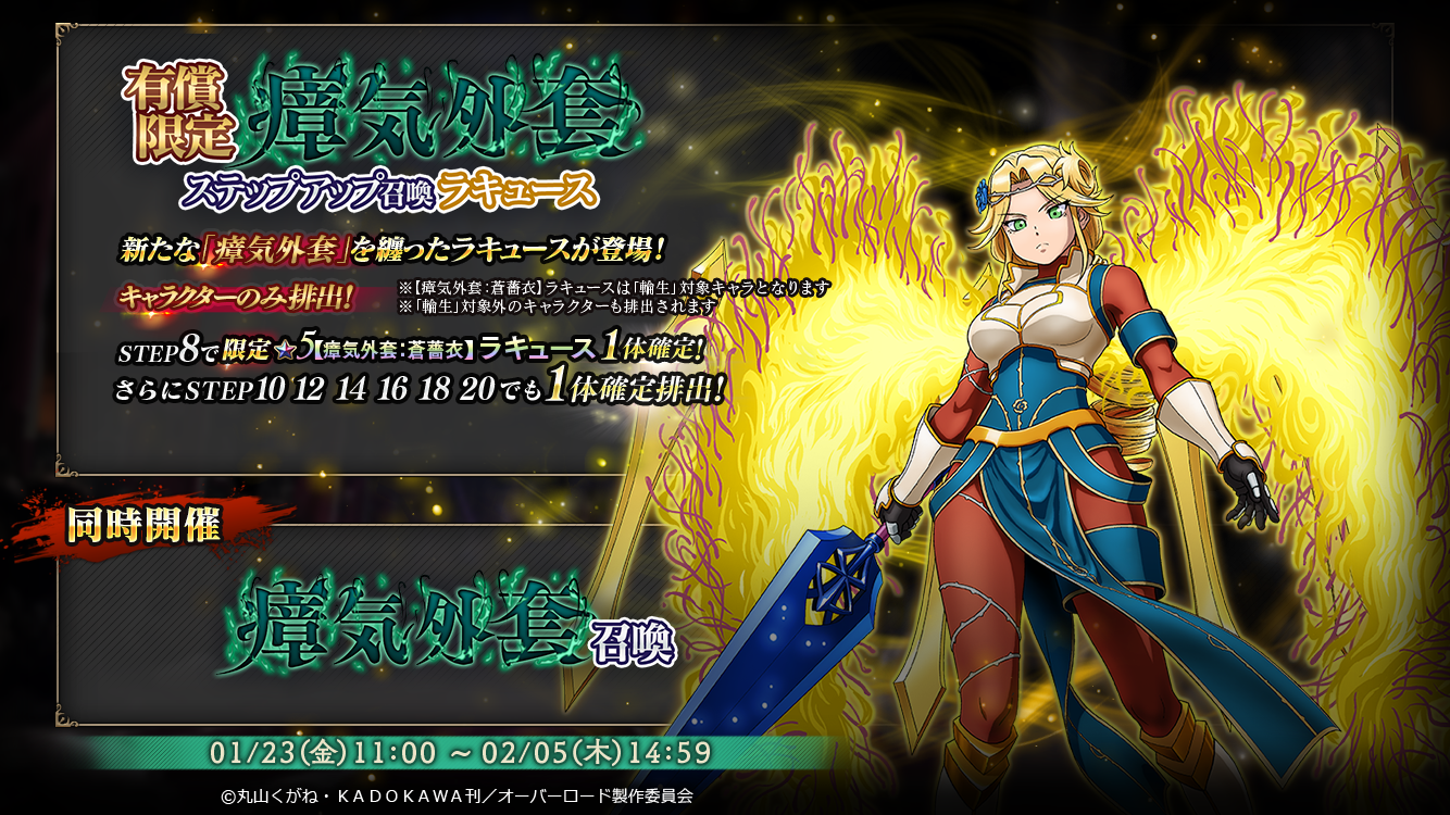 『有償限定 瘴気外套ステップアップ召喚-ラキュース-』『瘴気外套召喚』開催!