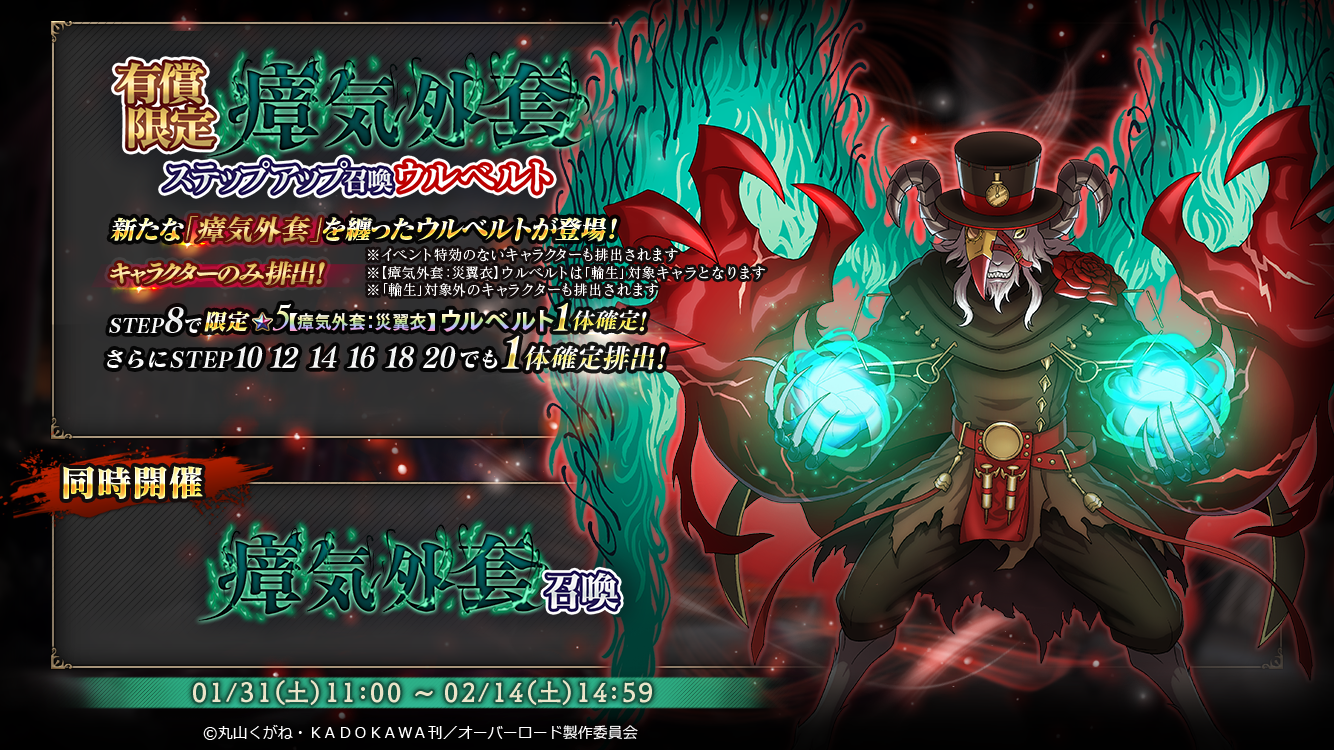 『有償限定 瘴気外套ステップアップ召喚-ウルベルト-』『瘴気外套召喚』開催!
