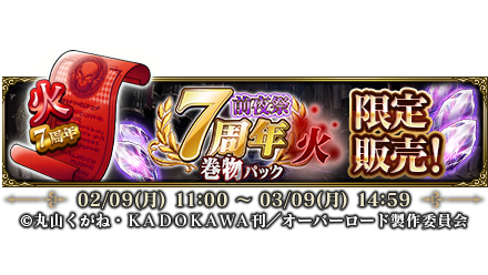 厳選された火属性の限定★5キャラからお好きな1体が選べる『7周年記念火属性交換巻物』や