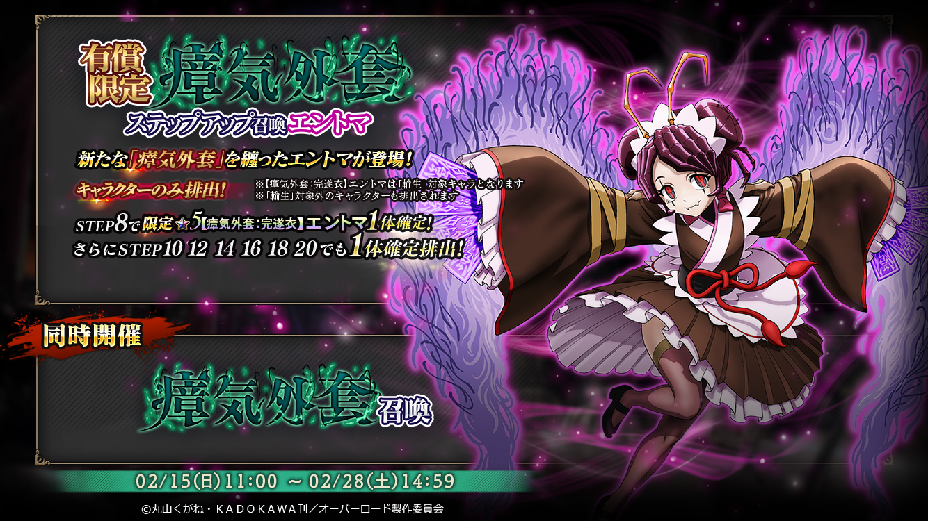 『有償限定 瘴気外套ステップアップ召喚-エントマ-』『瘴気外套召喚』開催!